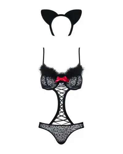 Фотографии Эротический костюм гепарда Obsessive Gepardina 3 pcs costume S/M, черный, меховая отделка, монокини,