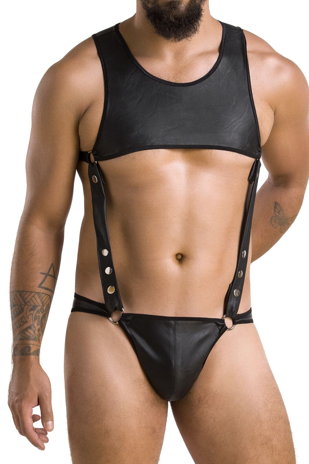 Фотографии Мужское кожаное боди Passion 056 Adam L/XL Black, заклепки