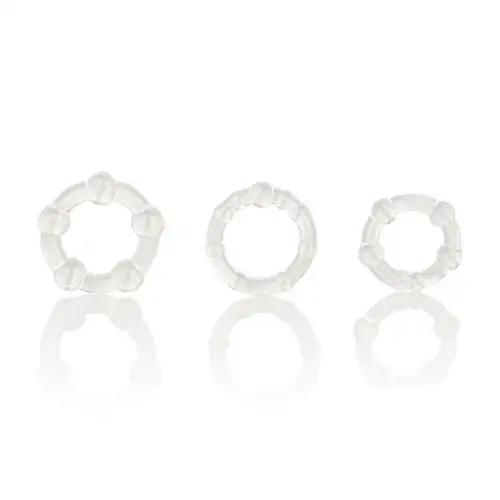 Три эрекционных кольца из мягкого гелевого материала: легко растягиваются, легко надеваются, не давят и не вызывают аллергических реакций.