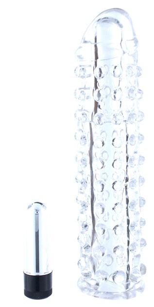 Эрекционная насадка VIBROPENIS SLEEVE CLEAR. Мягкая и эластичная силиконовая насадка-удлинитель "добавит" вашему половому члену +6 см в длину! Вибромодуль можно установить как в удлиняющей части, либо использовать отдельно. Размер насадки - универсальный.