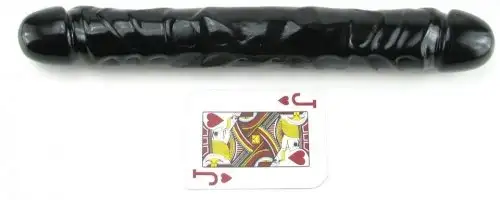 Фаллоимитатор двойной Double Header, 30x3,5 см изготовлен из плотного поливинилхлорида черного цвета.