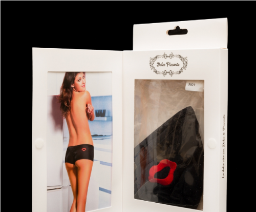 Главная особенность изделия – блестящая ткань и декор в виде поцелуйчика, который намекает на то, где вас должен ласкать любимый. Занимается изготовлением итальянский бренд, который считают лучшим. Дизайнеры фирмы знают, как сделать женщину еще привлекательнее и желаннее!