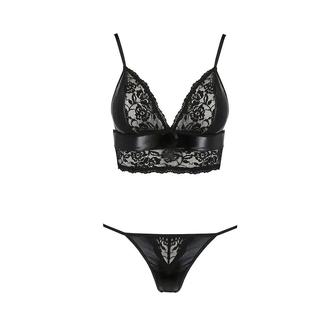 Комплект ASUNA SET black S/M Passion станет прекрасным дополнением к вашей коллекции нижнего белья. Этот комплект включает в себя сексуальный бюстгальтер без косточек и соответствующие стринги, сделанные из высококачественных материалов, которые приятны на ощупь. Черная кружевная отделка придает элегантности и изысканности этому соблазнительному комплекту.
